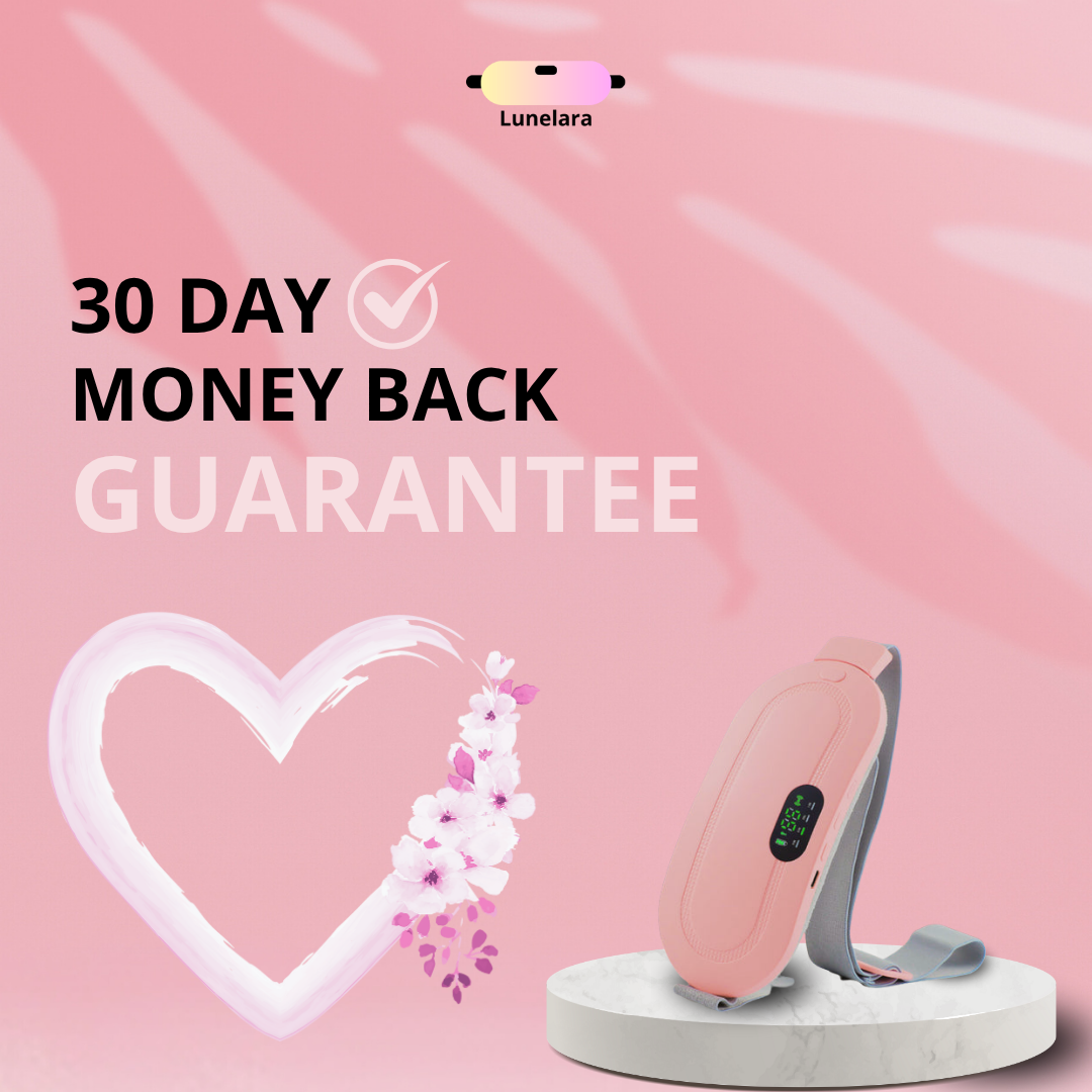 Every Lunelara™ purchase comes with a 30 day money back guarantee, and even the option to purchase a lifetime warranty for only $5! We are extremely confident in the quality of our revoluionary Portable Cramps Relief Belt & Massager. We are also extremely confident in its ability to bring relief and relaxation into your life!